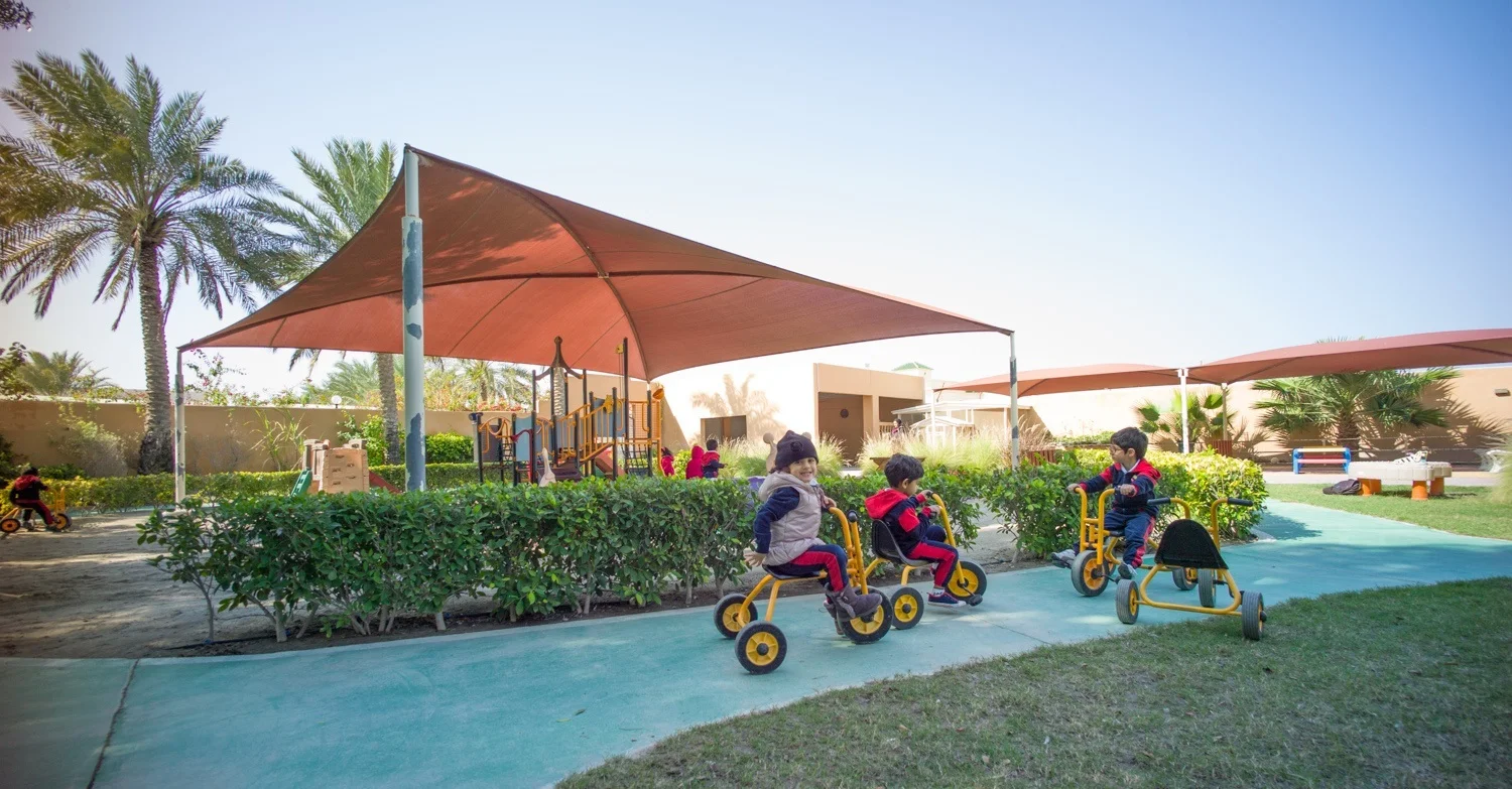 The school is nestled in a garden in Al Hamala, one of the most untouched areas in Bahrain, far away from busy streets, noise and clutter. The unique setting offers the child a sense of security. The whole environment is child-centered featuring child-size sinks in the classrooms and child-size facilities in the bathrooms. Everything is conceived for the safety, comfort and inspiration of the children. A large and fully equipped multi-purpose hall is available for extra-curricular activities and indoor use on hot or cold days. The outdoor play area includes facilities for sand and water activities, and gardens where children can enjoy planting flowers and vegetables.